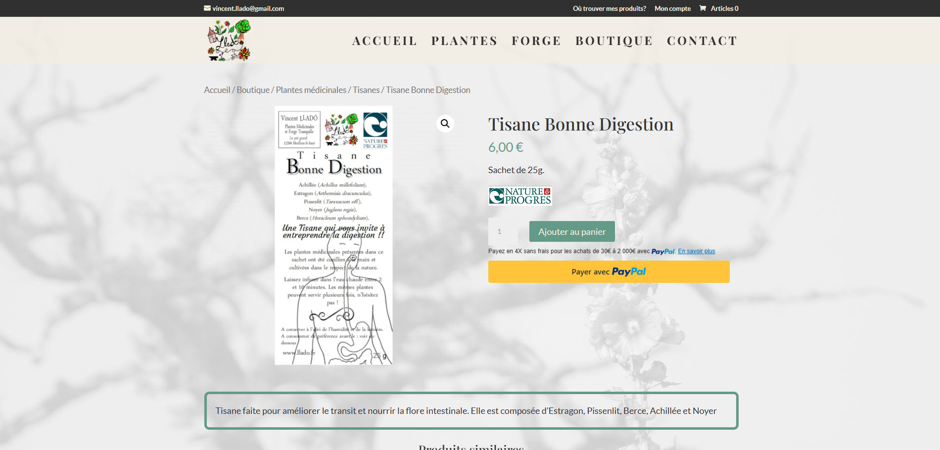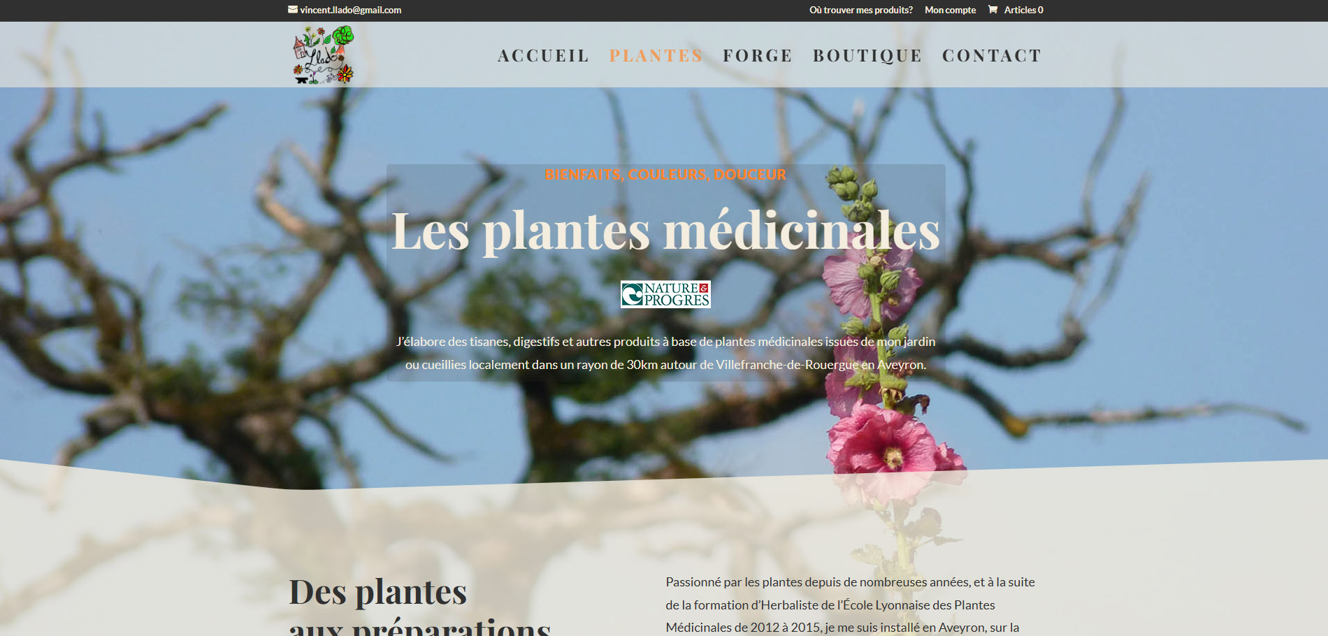 Vincent Llado souhaitait créer un site internet avec un volet e-commerce pour présenter ses deux passions, les plantes médicinales et la forge. Ce site lui permet également de proposer à la vente ses préparations à base de plantes médicinales ainsi que des petits objets forgés par lui-même.